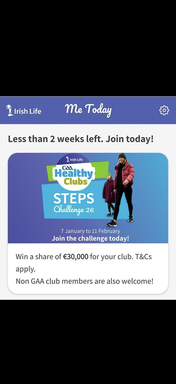 Tap on the social tab on the MyLife appSelect challengesSelect MunsterTap on join & select Naomh Eoin GAA.